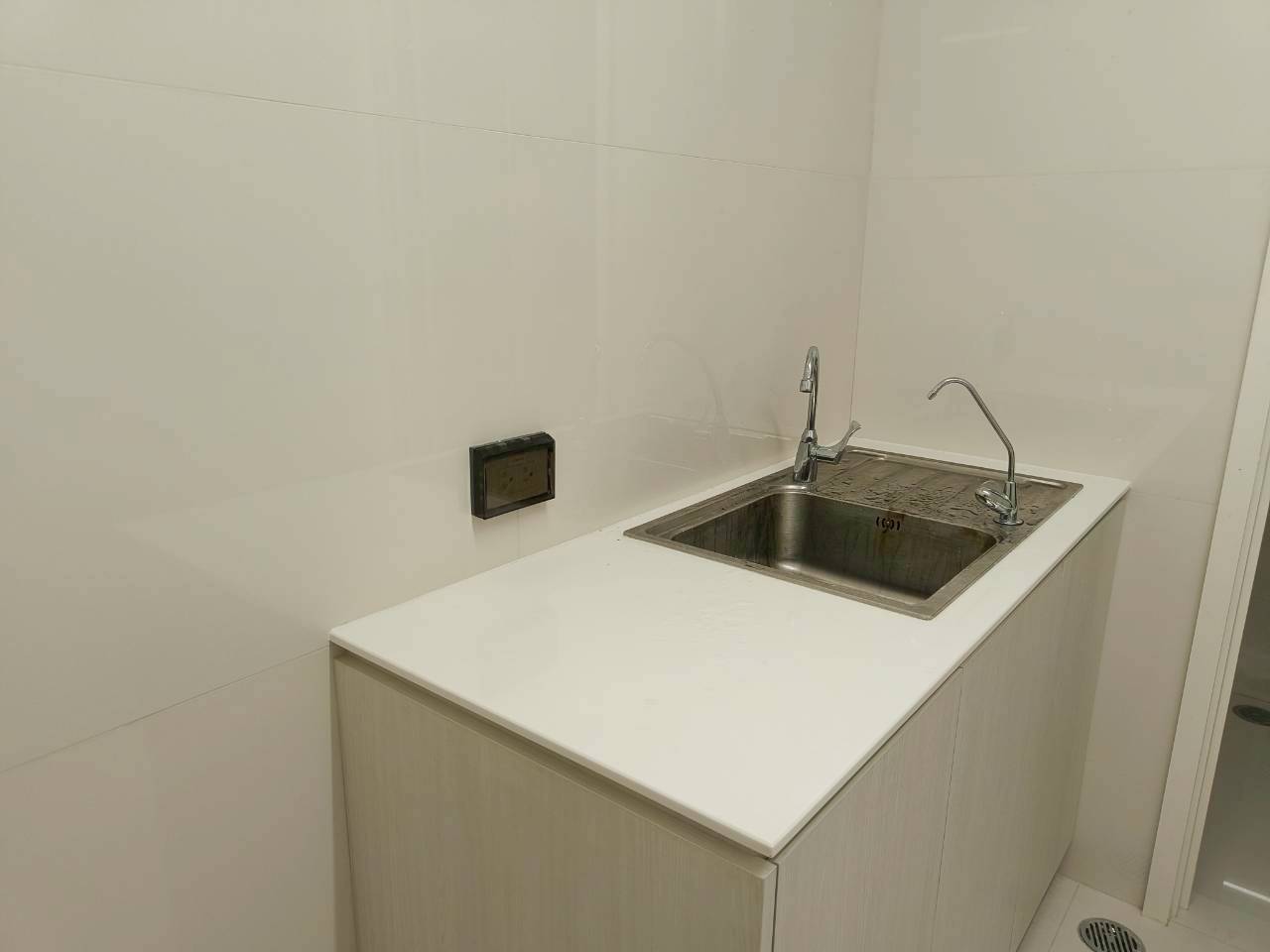 パントリーはコンパクトながら必要十分な設備が整っています。シンクには飲料水専用の蛇口も備わっており、実用的な仕様です。