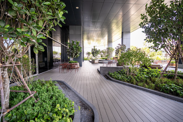 アウトドアエリア:屋外シーティングエリア、ウォーキングトラック、ピックルボールコート、都市型屋上農園を完備。仕事の合間のリフレッシュや健康管理に役立つ環境が整っています。