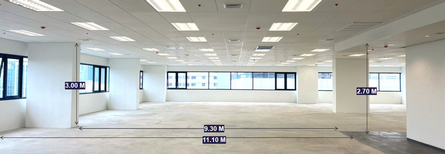 ยูนิตสำนักงานมีความสูงเพดาน 3 เมตร ซึ่งช่วยสร้างบรรยากาศการทำงานที่โปร่งโล่งและสว่าง