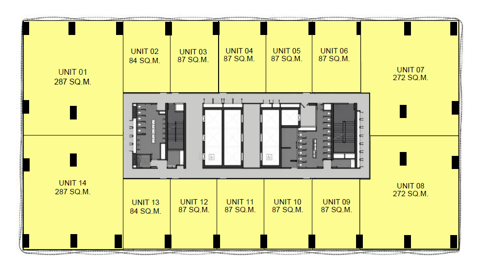 ยูนิตสำนักงานภายในอาคารมีหลากหลายขนาด เพื่อให้ตอบโจทย์ความต้องการทางธุรกิจที่แตกต่างกัน การจัดเรียงพื้นที่ได้รับการออกแบบอย่างมีประสิทธิภาพ โดยห้องส่วนใหญ่มีรูปทรงที่เป็นสี่เหลี่ยมจัตุรัส ซึ่งเป็นข้อได้เปรียบสำคัญที่ช่วยให้ผู้เช่าสามารถจัดวางเฟอร์นิเจอร์หรือติดตั้งพาร์ทิชันได้อย่างสะดวกและยืดหยุ่น