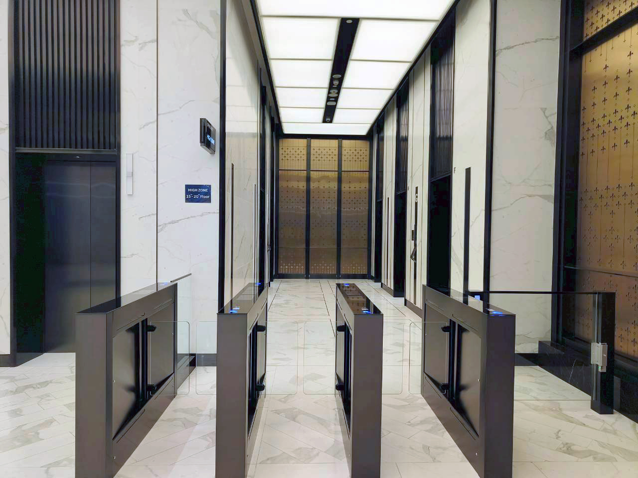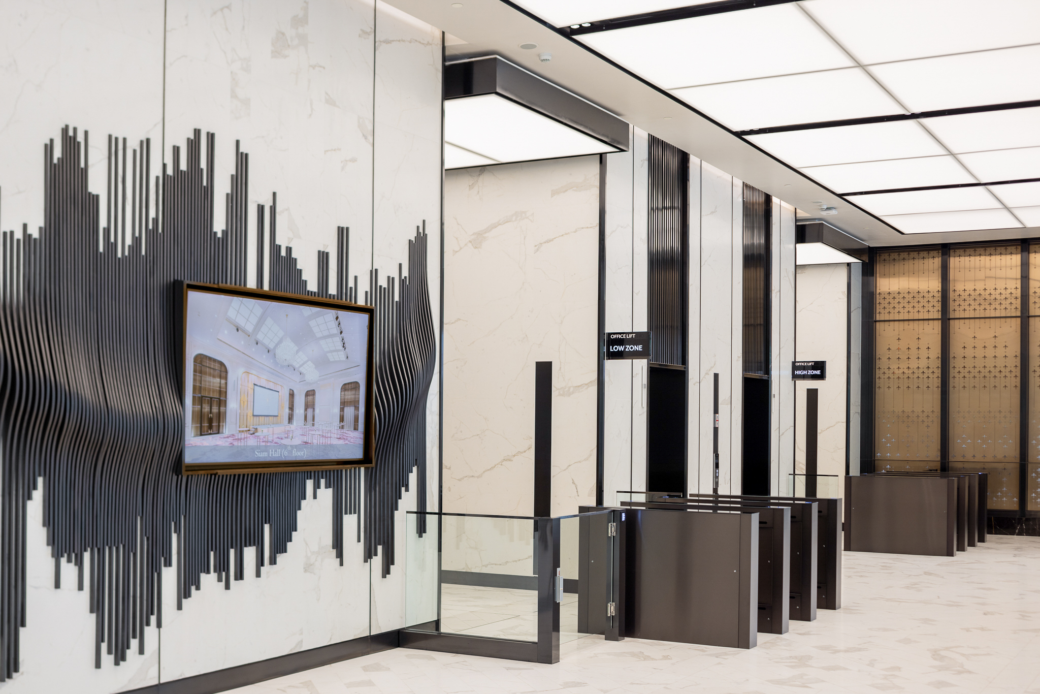 最新技術を用いたセキュリティシステムを採用しています。目的地階予約システム(Destination Control)連動のターンスタイルゲートにより、スムーズかつ厳重な入退館管理を実現。
